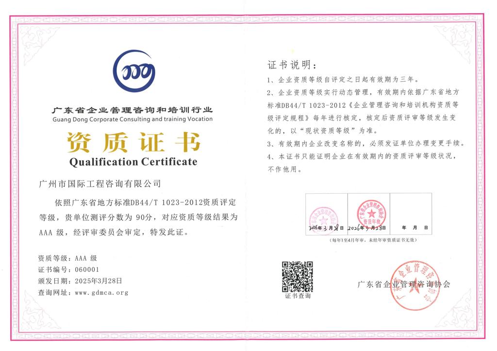 廣東省企業(yè)管理咨詢和培訓(xùn)行業(yè)AAA級(jí)資質(zhì)