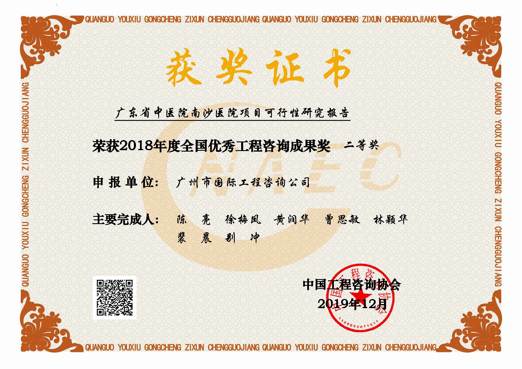 2018年度全國優(yōu)秀工程咨詢成果二等獎(廣東省中醫(yī)院南沙醫(yī)院...