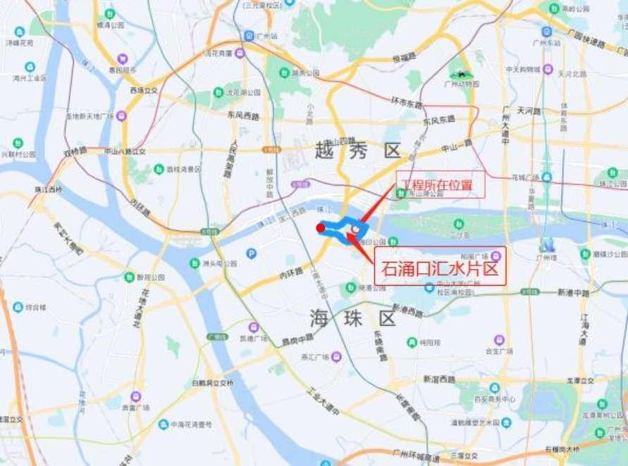 3、建設(shè)地點(diǎn)與范圍:項(xiàng)目位于廣州市海珠區(qū)濱江中路石涌口流域范圍,項(xiàng)目位置如下圖:
