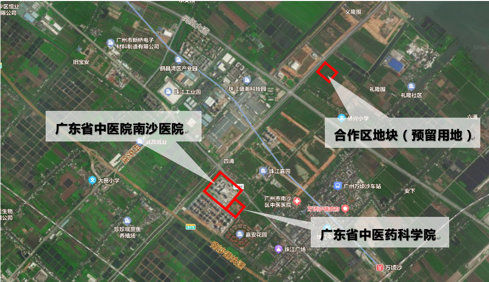 本項目選址包括兩個地塊。廣東省中醫(yī)院南沙醫(yī)院和廣東省中醫(yī)藥科學院選址于南沙珠江街粵港深度合作區(qū)配套地塊(簡稱“珠江街地塊”),位于南珠大道以南、靈新大道以西。合作區(qū)地塊為預留用地,選址于南沙新區(qū)粵港澳深度合作區(qū),位于萬新大道以東,明珠灣大道以南。