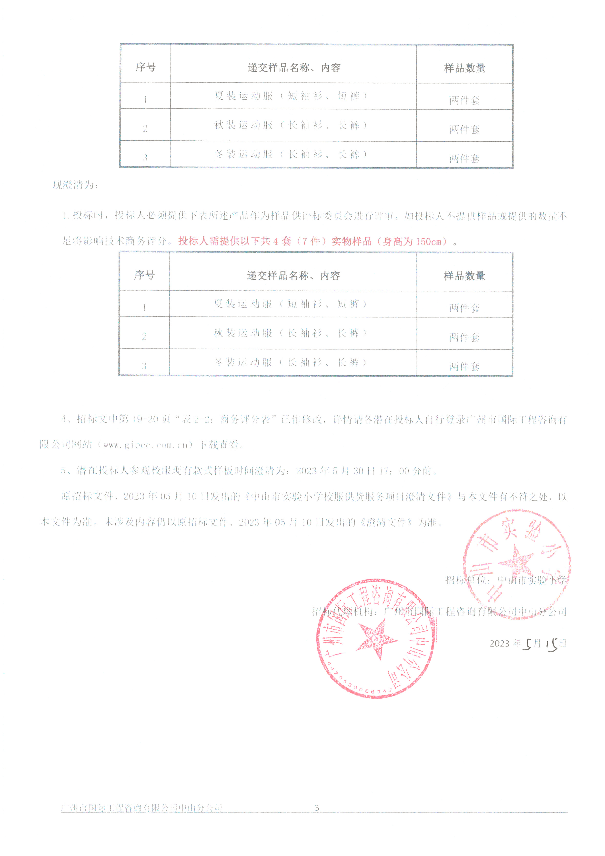 中山市實驗小學(xué)校服供貨服務(wù)項目澄清文件(二)