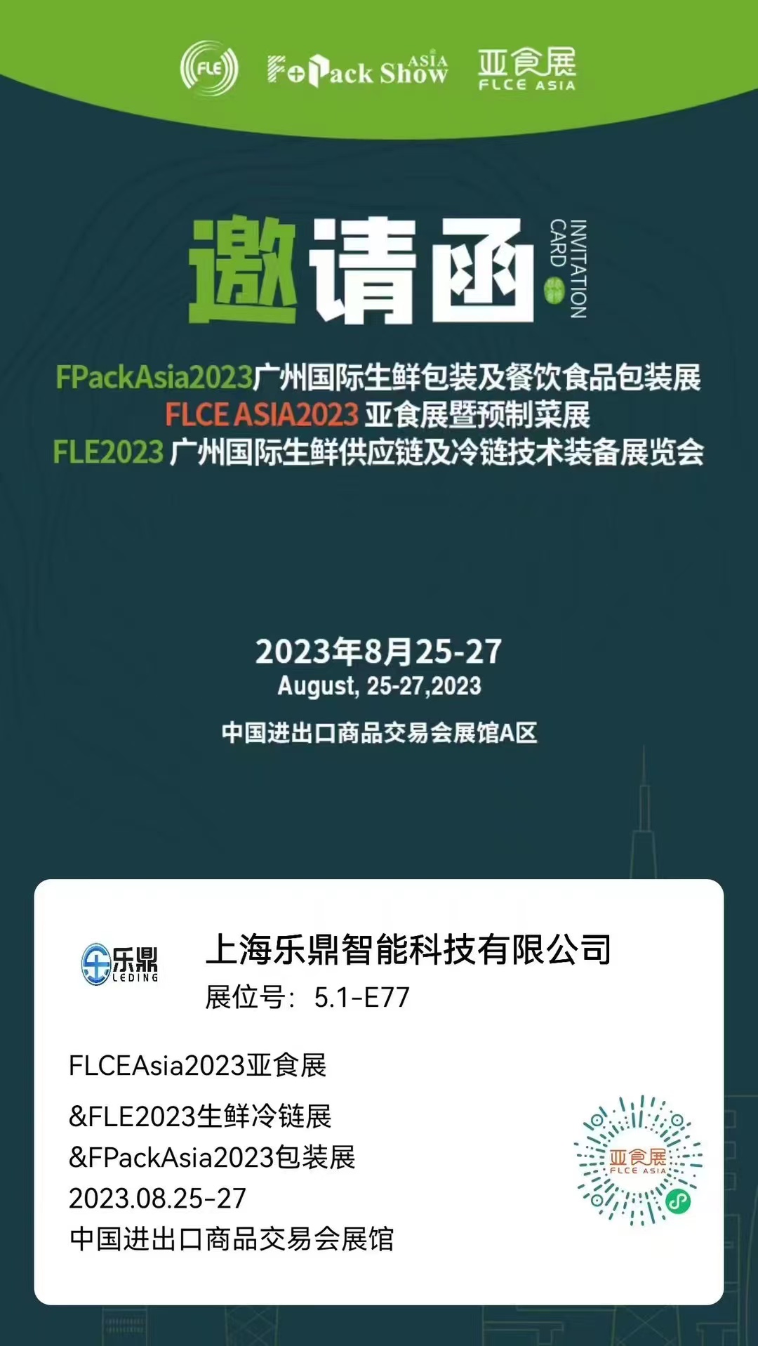 沐鷹智能上海公司(上海樂鼎智能科技有限公司)于8.25-8.27日在廣州廣交會展參加2023FLCEAsia亞食展暨預(yù)制菜展,展位號:5.1-E77, 歡迎新老客戶過來現(xiàn)場參觀和指導(dǎo)!