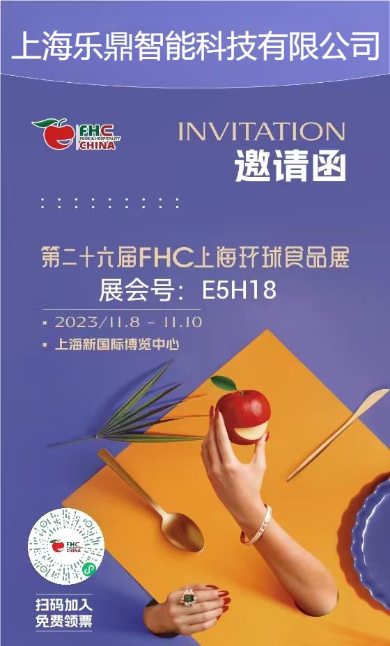 上海樂鼎智能科技有限公司于11.8-11.10日在上海新國際博覽中心參加第二十六屆FHC上海環(huán)球食品展,展位號:E5H18, 歡迎新老客戶過來現(xiàn)場參觀和指導(dǎo)!