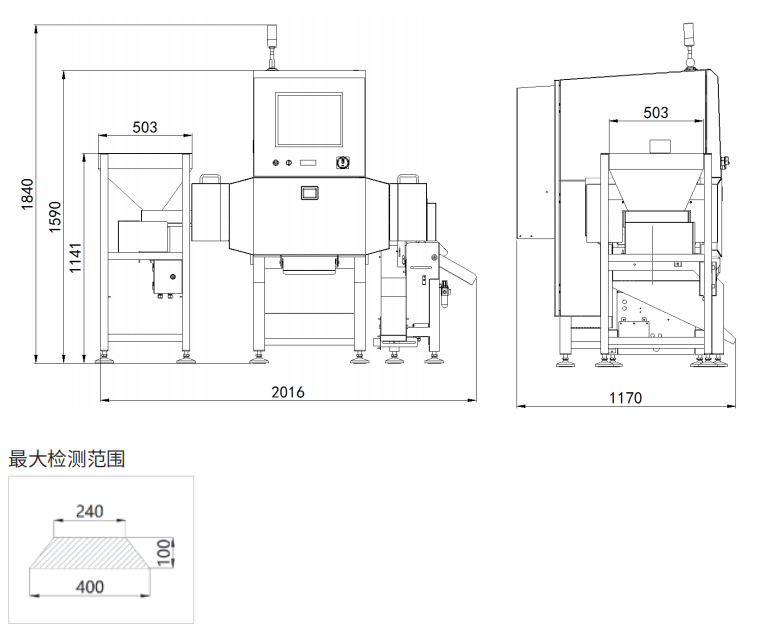 不銹鋼球:0.3mm; 不銹鋼絲:0.2*2mm 陶瓷玻璃球:1.0mm 備注:可檢測的異物尺寸與產品內物質成分、包裝材料、厚度大小等參數有關系,請以實際產品測試結果為準。 |